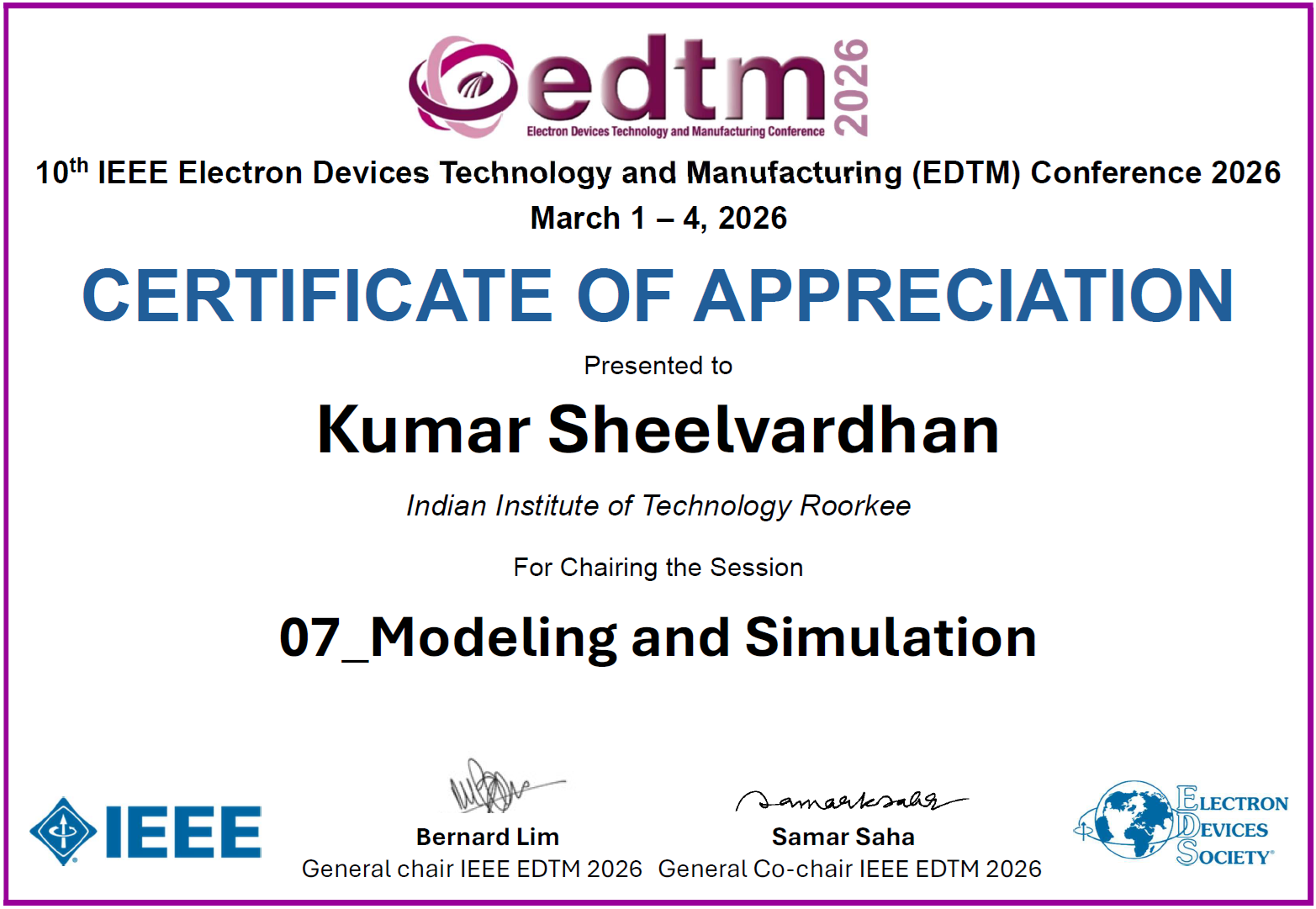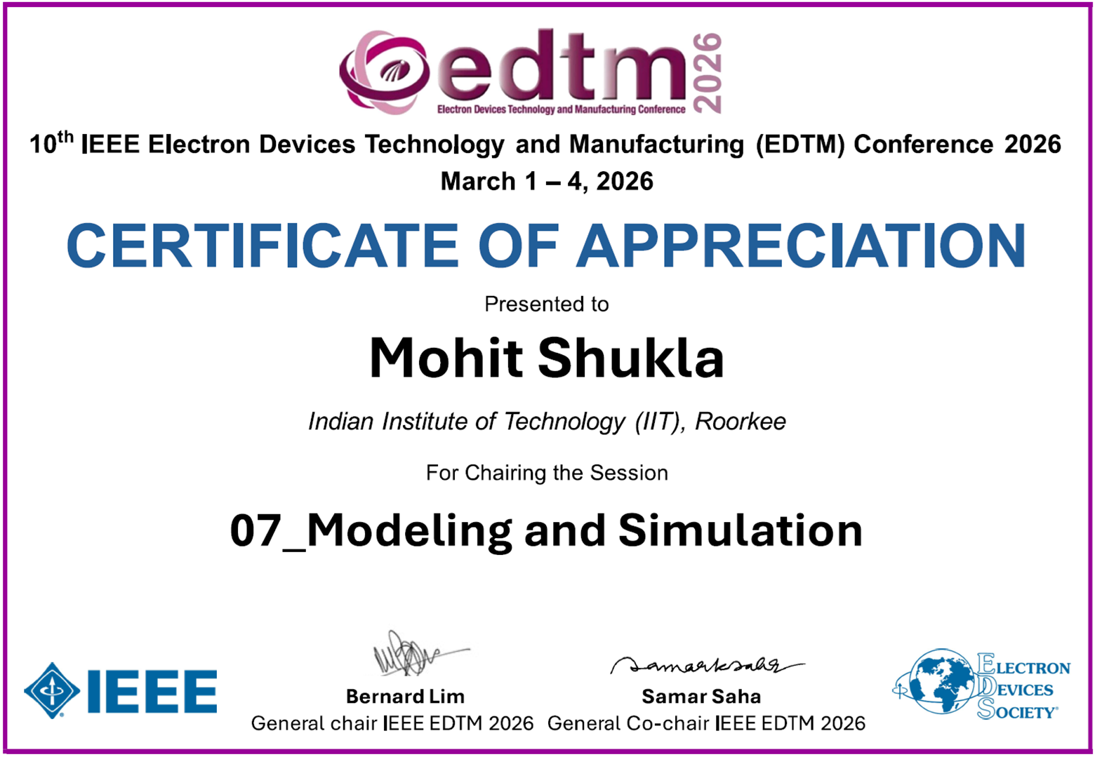 Mohit chaired the Modeling and Simulation session at EDTM 2026